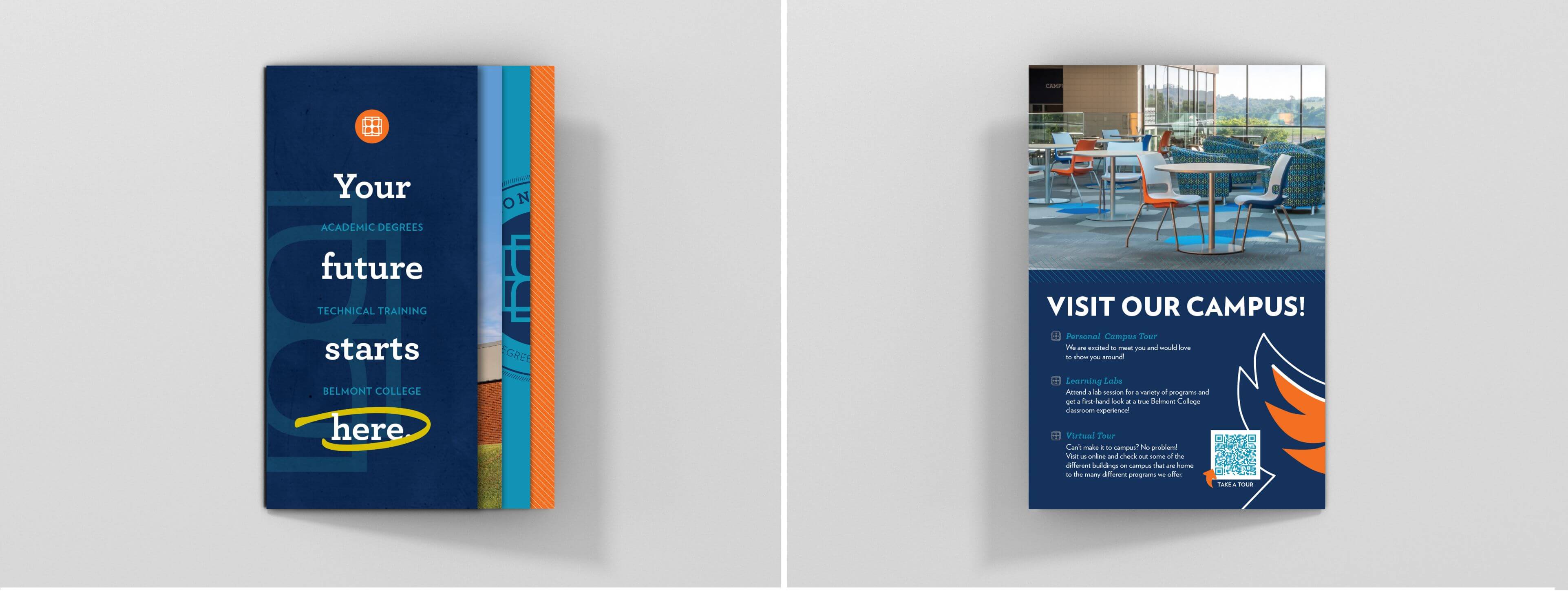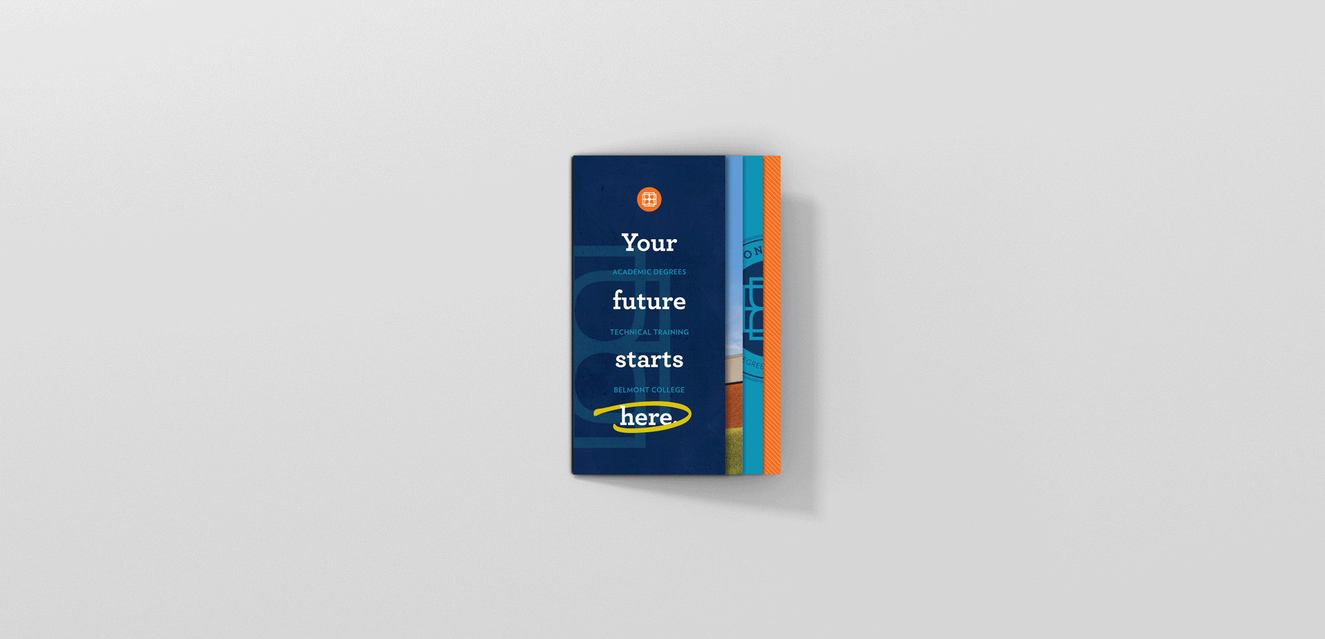 Belmont College’s offerings had expanded in recent years, but their admissions brochure hadn't kept pace. With a marketing team eager to make a strong impression at high schools, conferences, and events, the ask was clear: fit a lot of information into one cohesive printed piece that felt like a conversation starter, not a catalog. The main objective? An enticing, awareness-building handout that people actually want to pick up.